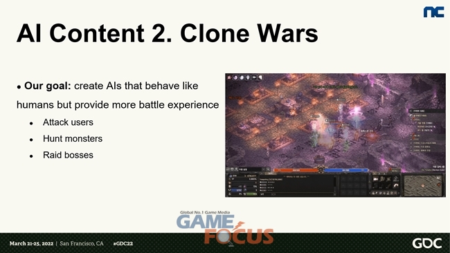 엔씨(NC) 안진형 AI 엔지니어는 "MMORPG의 특성상 반복되는 패턴의 사냥으로 플레이어가 피로감을 느끼기 쉬운데, AI 강화학습 기술로 이 점을 보완했다"며 "이번에 연구한 콘텐츠는 게임에 색다른 긴장감을 부여하는 수단으로 AI를 활용할 가능성을 확인했다는 것에 큰 의미가 있다"고 설명했다.