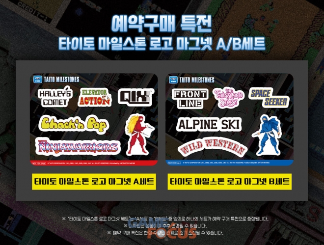 ※ '타이토 마일스톤 로고 마그넷 세트’는 'A세트’와 'B세트’ 중 임의로 하나의 세트가 예약 구매 특전으로 증정됩니다.