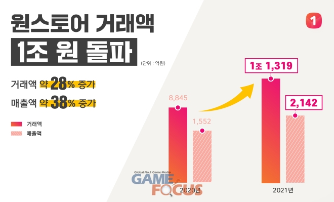 게임, 앱, 스토리콘텐츠 등 다양한 모바일콘텐츠를 서비스하는 앱마켓 원스토어(대표 이재환)가 14분기 연속 최대 실적을 갱신하며 2021년 연간 거래액 1조 원을 넘어섰다고 밝혔다.
