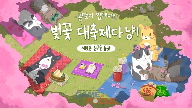 이와 함께 새로운 테마의 휴식 시설 '소풍'도 업데이트됐다. 고양이들이 쉴 수 있는 소풍 테마의 공간으로, 휴식을 취하는 고양이의 모습을 확인할 수 있다.
