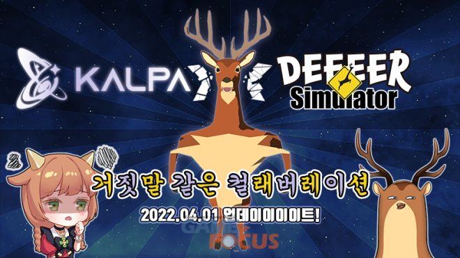 케세라게임즈(대표 박재현)가 만우절을 맞아 자사에서 개발하고 서비스하는 오리지널 리듬게임 'KALPA(칼파)'와 코믹 시뮬레이션 액션게임 '사아아아아슴 시뮬레이터 아주 흔한 사슴 이야기(이하 사슴 시뮬레이터)'와의 콜라보레이션을 실시한다.
