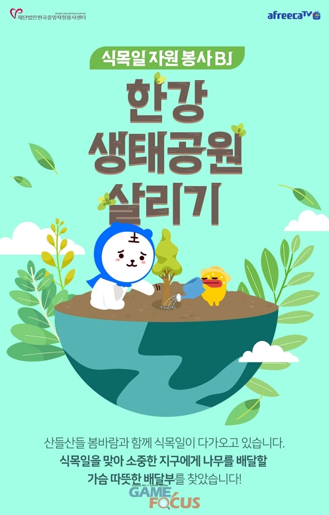 아프리카TV는 5일 임직원 및 BJ(Broadcasting Jockey, 1인 미디어 진행자)들과 함께 서울 여의도에 위치한 '샛강생태공원'에서 환경 정화 플로깅(plogging) 활동과 나무를 직접 심는 '한강 생태공원 살리기' 봉사활동을 진행한다.