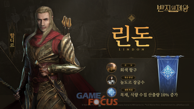 중간계 서북쪽에 위치한 요정 왕국 '린돈’을 선택하면 회색 항구에서 영웅 '할디르’로 시작하게 된다. 린돈은 '목재, 식량 수집 산츌량 10% 증가’ 특성이 있어 풍족한 보급으로 장기적인 세력전쟁에 우위를 가질 수 있다. 또한 특수 유닛인 '놀도르 장궁수’를 통해 사거리 싸움에서 이득을 취할 수 있다. 요정들의 항구도시를 경험하고 싶다면 린돈이 최고의 선택이 될 수 있다.