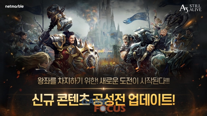 넷마블(대표 권영식, 도기욱)이 모바일 최초 배틀로얄 MMORPG ‘A3: 스틸얼라이브’에 ‘공성전’을 추가하는 등 업데이트를 실시했다고 8일 밝혔다.