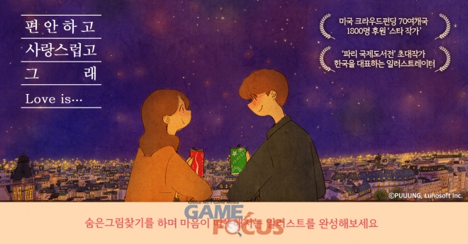 ‘Love is…’는 힐링 아트 게임의 감성을 전달하는 숨은그림찾기 장르 게임으로, 네이버 그라폴리오가 배출한 대표적인 스타 일러스트레이터이자 애니메이터인 ‘퍼엉’ 작가의 원작 IP를 기반으로 개발되었다.