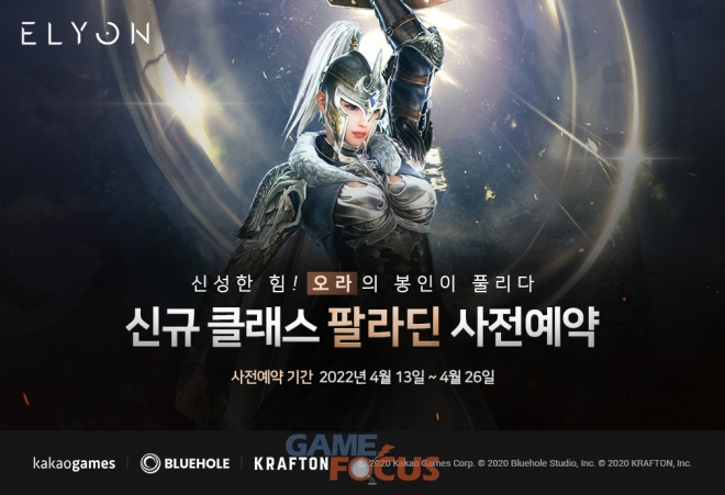 (주)카카오게임즈(대표 조계현)가 서비스하고 (주)블루홀스튜디오(대표 조두인)가 개발한 PC MMORPG '엘리온(Elyon)'이 신규 클래스 '팔라딘' 출시를 앞두고 오늘부터 사전 예약을 시작한다.