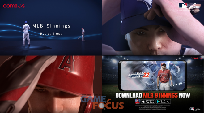 독보적인 테크니션 피처 류현진과 현역 최고 타자로 불리는 마이크 트라웃이 가진 특유의 투구 동작과 타격 모션을 3D 애니메이션 형태로 파워풀하게 연출했으며, 강력한 미사일과 방패가 부딪혀 폭발하는 듯한 이펙트까지 추가해 선수들의 대결 구도를 긴장감 넘치게 표현해냈다. 영상은 대결을 마친 선수들의 얼굴이 클로즈업된 후 게임 타이틀이 등장하며 마무리된다.