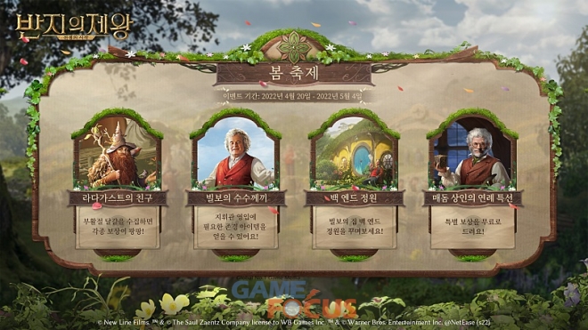 넷이즈 게임즈(NetEase Games)는 자사에서 개발하고 서비스하는 모바일 게임 '반지의 제왕:전쟁의 시작(The Lord of the Rings: Rise to War)'에서 봄의 기운이 충만한 따스한 시즌을 맞이해 유저들을 대상으로 풍성한 혜택을 선사하는 '샤이어의 봄 축제 이벤트'를 4월 20일 오늘부터 오는 5월 4일까지 2주간 실시한다고 밝혔다.