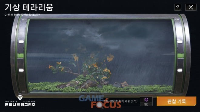 가장 먼저, ‘DIY 테라리움’ 이벤트는 밀폐된 소형 생태계 ‘테라리움’을 관측하고 관리하는 형태로 진행된다. 이용자는 생태계 관련 지식을 학습한 후, 테스트에 통과하면 인근 생태계 애호가들로부터 DIY 테라리움의 재료를 받을 수 있다. 이 테라리움을 통해 이용자는 생태계 학회가 제공한 참조 데이터를 엄격하게 준수하여, 환경 온도와 빛을 제어하는 등 생태학의 신비함과 매력을 느낄 수 있다. 또한, 이벤트 기간 동안 매일 1회 ‘관측기록’을 클릭하여 이벤트 보상도 획득할 수 있다.