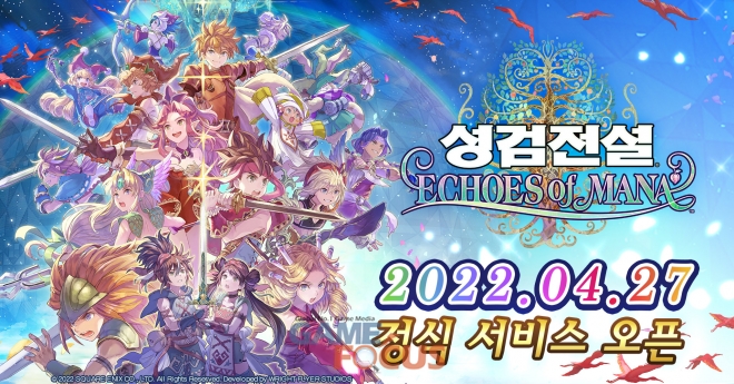 SQUARE ENIX CO., LTD. (이하 SQUARE ENIX, 본사: 도쿄도 신주쿠구, 대표: 마츠다 요스케)는, 주식회사 WFS(본사: 도쿄도 미나토구/대표 이사 사장: 야나기하라 요타, GREE 주식회사 100% 자회사)가 개발한 <성검전설> 시리즈의 모바일 액션 RPG <성검전설 ECHOES of MANA>의 정식 서비스를 시작했다. 또한, 사전 등록 건수가 100 만 건을 돌파하여 모든 플레이어에게 게임 내 아이템을 지급한다.