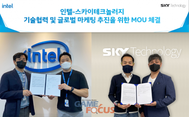 스카이테크놀러지(대표 장상옥)는 인텔과 '프로젝트 삿갓'의 게임 환경 최적화 및 글로벌 공동 마케팅 추진을 위한 업무협약(MOU)을 체결했다고 4일 밝혔다. 스카이테크놀러지와 인텔은 3일 양사 주요 관계자들이 참석한 가운데 MOU 체결식을 비대면으로 진행했다.