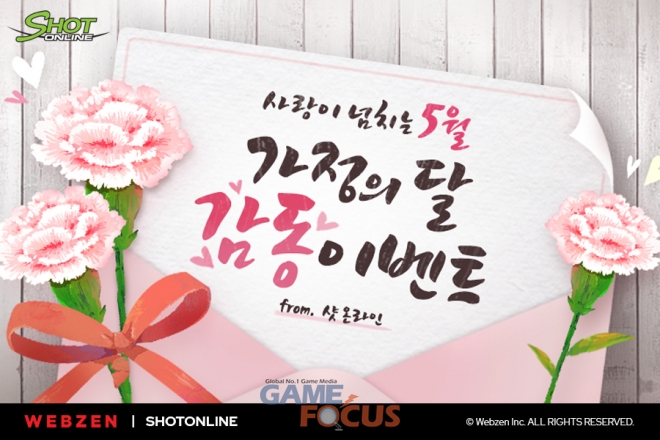 웹젠은 오늘(5월 4일) 공식 홈페이지를 통해 ‘샷온라인’ 가정의 달 이벤트의 세부 내용을 공개했다. 웹젠의 '샷온라인' 5월 가정의 달 이벤트는 총 4가지 이벤트로 구성되어 있다.