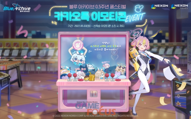 넥슨은 5월 ‘블루 아카이브의 달’을 맞아 ‘0.5주년 페스티벌’ 이벤트 로드맵을 공개했다. 이번 업데이트에서는 이용자들에게 큰 인기를 끌었던 ‘0.5주년 몰루 이모티콘 3탄’을 선착순으로 지급한다.