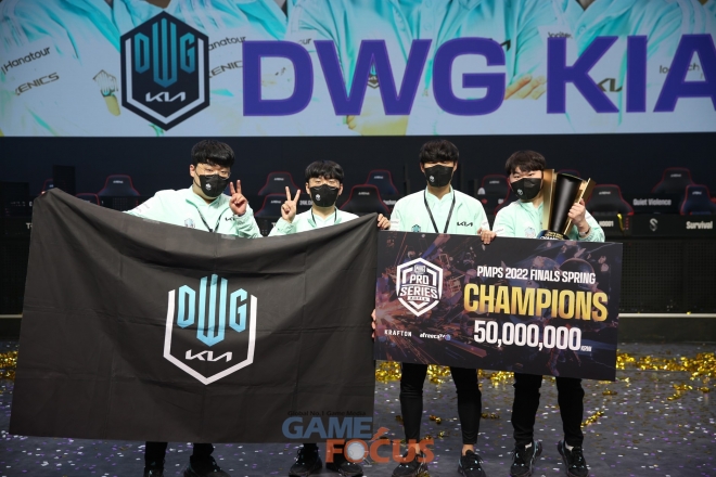우승팀 DWG KIA는 무려 148점의 누적 순위 포인트를 획득하며 대회 내내 안정적인 경기 운영을 선보였다. DWG KIA는 시즌2에서 4위에 머무르며 아쉬운 결과를 남겼지만, 압도적인 기량으로 시즌1 우승팀의 명예를 회복하고 PMPS 2022 파이널 스프링의 챔피언에 등극해 상금 5,000만 원의 주인공이 됐다.