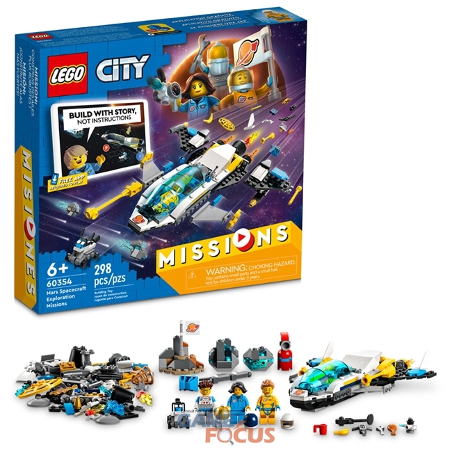 '레고 시티 화성 우주선 탐사 미션(60354)'은 실물을 방불케 하는 왕복우주선과 행성 탐사 차량으로 스릴 넘치는 화성 탐험이 가능한 세트다. 직접 우주 비행사가 되어 우주선을 조종하고 또 개조해보는 등 창의력과 상상력을 자극하는 다채로운 미션이 제공된다. 우주비행사를 포함한 3개의 미니피겨와 로봇 강아지, 2개의 소행성, 레이저 용접기 등 소품도 포함됐다.