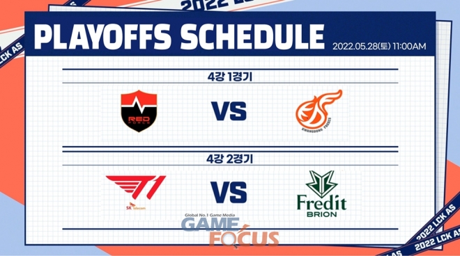 2022년 상반기 최고 LCK 아카데미가 가려질 플레이오프는 오는 28일(토)부터 진행된다. 4강 대진은 풀리그 결과에 따라 1경기는 NS 레드포스 아카데미 vs 광동 프릭스 아카데미, 2경기는 T1 루키즈 vs 프레딧 브리온 아카데미로 성사되었으며, 오전 11시부터 1경기가 시작된다. 3,4위전 및 결승전은 29일(일) 오전 11시에 순차적으로 진행되며 모두 5전3선승제다.
