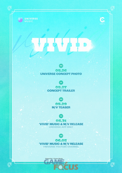 26일 ‘VIVID’ 콘셉트 포토 공개를 시작으로 27일 콘셉트 트레일러, 29일 뮤직비디오 티저가 순차 공개된다. 유니버스는 감각적인 티징 콘텐츠를 선보이며 신곡에 대한 열기를 고조시켜 나갈 예정이다.