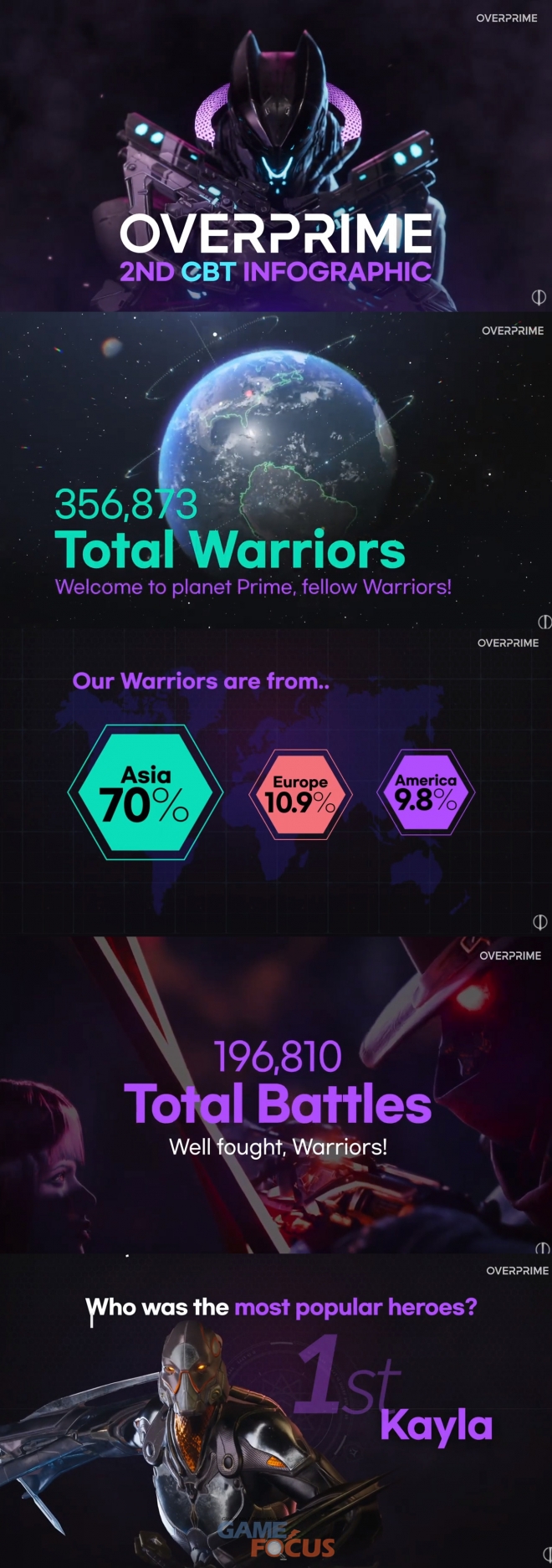 지난 4월 29일부터 5월 9일까지 진행된 오버프라임 2차 CBT 참가자 수는 총 162개국 35만명으로, 권역별로는 아시아 70%, 유럽 10.9%, 북미 9.8%를 차지했다. 지난 1차 CBT 참가자 수 5만7천명과 비교해 2차 참가자 수는 약 6배 증가했다.