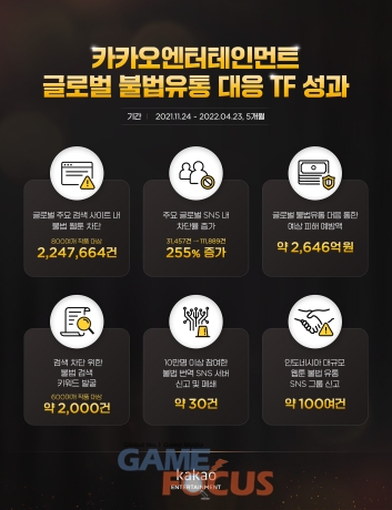 카카오엔터테인먼트 글로벌 불법 유통 대응 TF는 창작자 수익은 물론 창작 열의를 심각하게 저해하는 불법 유통을 뿌리뽑고자 지난해 11월 개설됐다. 영어권과 중화권(간체자/번체자), 인도네시아어권 등 전담 인력을 두고 불법 번역 게시물 삭제 요청과 불법물 모니터링을 상시 진행하고 있으며, 한국 본사 주도로 체계적이고 강력한 현지 대응 역시 진행 중이다.