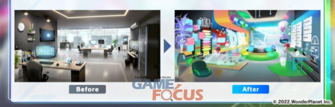 우선, 유저들이 가상공간으로 한층 몰입되게끔 새로운 차원의 비주얼을 재구축했다. 이에, 게임의 메타버스 및 배경인 'ALICE'를 한층 돋보이도록 전체적인 배경 디자인 변경을 시작으로, 이펙트를 추가해 몰입감 있는 어드벤처 장면(ADV)을 구축하며 '가상공간' 세계관을 강화했다.