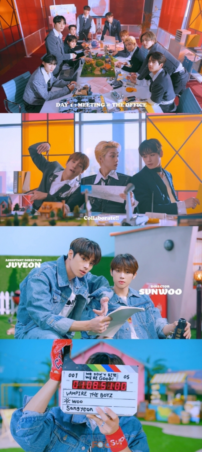 공개된 트레일러 영상 속 더보이즈는 컬러감이 돋보이는 오피스에서 자유롭게 캠페인 미팅을 진행하는 모습이 담겨 있다. 특히, 'Today's Agenda: Think of ways to be More Friendly & Likeable Vampire(오늘의 안건: 조금 더 친근하고 호감 가는 뱀파이어가 되는 방법 생각하기)'라는 주제로 서로 논의하는 열정적인 모습에 시선이 집중된다.