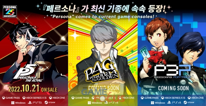 세가퍼블리싱코리아(대표 사이토 고)는 '페르소나' 시리즈의 25주년을 기념하여 '페르소나5 더 로열', '페르소나4 더 골든', '페르소나3 포터블'을 아시아 지역 대상으로 여러 플랫폼에서 발매한다고 밝혔다.