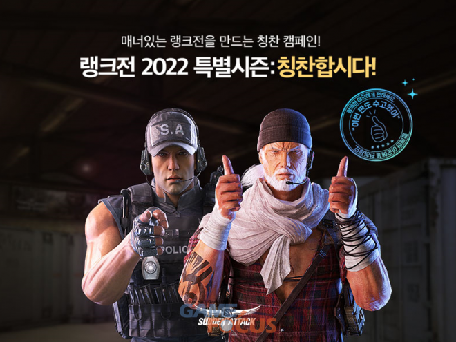 넥슨(대표 이정헌)이 온라인 FPS 게임 ‘서든어택’에 ‘랭크전 2022 특별시즌: 칭찬합시다!’를 16일 업데이트했다.