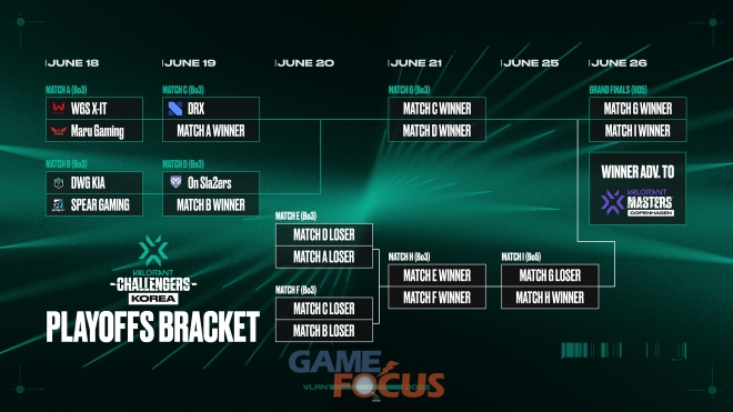 플레이오프는 3전 2선승제로 펼쳐지며, 25일 열리는 패자조 결승과 26일 최종 결승전은 5전 3선승제로 진행된다. 26일 결승전에서 승리하는 팀은 한국 지역 대표 자격으로 덴마크 코펜하겐에서 열리는 마스터스 스테이지2에 진출한다.