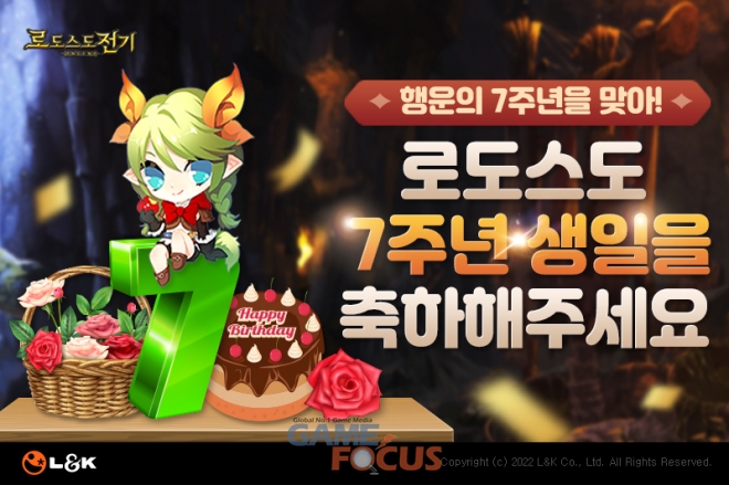 정통 온라인 MMORPG '로도스도 전기 온라인'을 개발, 서비스하는 (주)엘엔케이로직코리아(대표 남택원, 이하 엘엔케이)는 오는 6월 18일(토)을 기해 로도스도 전기 온라인이 한국 정식 서비스를 시작한 지 7주년을 맞이하며 이를 유저들과 함께 기념하고 축하하기 위해 7주년 기념 이벤트를 6월 16일(목)부터 7월 28일(목)까지 총 6주간 진행한다고 밝혔다.