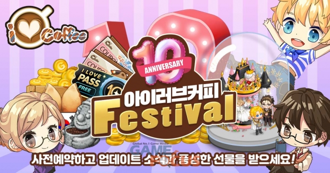 10주년을 기념하며 사전예약에 들어간 '아이러브커피'는 참여자 모두에게 지급되는 선물을 호화롭게 준비했다. 테마 모셔오기 선택권(5종 중 택일), 10일 간 매일 캐시와 경험치 버프 효과를 받는 10주년 기념 PASS, 스페셜 아이템 10주년 기념 아이러브커피 캐슬, 그리고 골드와 쿠폰, 교환권 등 풍성한 지원 아이템으로 역대급 보상이다.