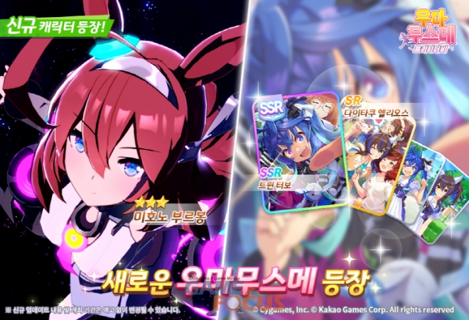 ㈜카카오게임즈(대표 조계현)는 4일, ㈜사이게임즈(대표 와타나베 코우이치)가 개발한 모바일 게임 ‘우마무스메 프리티 더비’에 신규 캐릭터 ‘미호노 부르봉’ 및 ‘서포트 카드’ 4종을 공개하는 두 번째 업데이트를 실시했다.