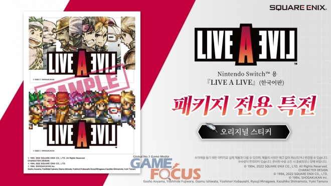 반다이남코 엔터테인먼트 코리아(대표 제랄드 누난)는 2022년 7월 22일 발매 예정인 Nintendo Switch 플랫폼 ‘LIVE A LIVE’(한국어판)의 패키지 예약 판매를 7월 8일부터 시작한다고 발표했다.