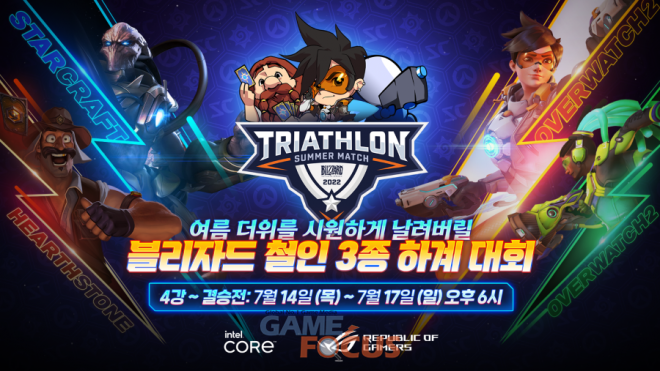 블리자드 엔터테인먼트(Blizzard Entertainment)가 자사의 인기 IP 오버워치(Overwatch®), 하스스톤(Hearthstone®), 스타크래프트: 리마스터(StarCraft®: Remastered™)로 진행되는 ‘블리자드 철인 3종 하계 대회’를 내일(14일, 목) 저녁 6시부터 선보인다.