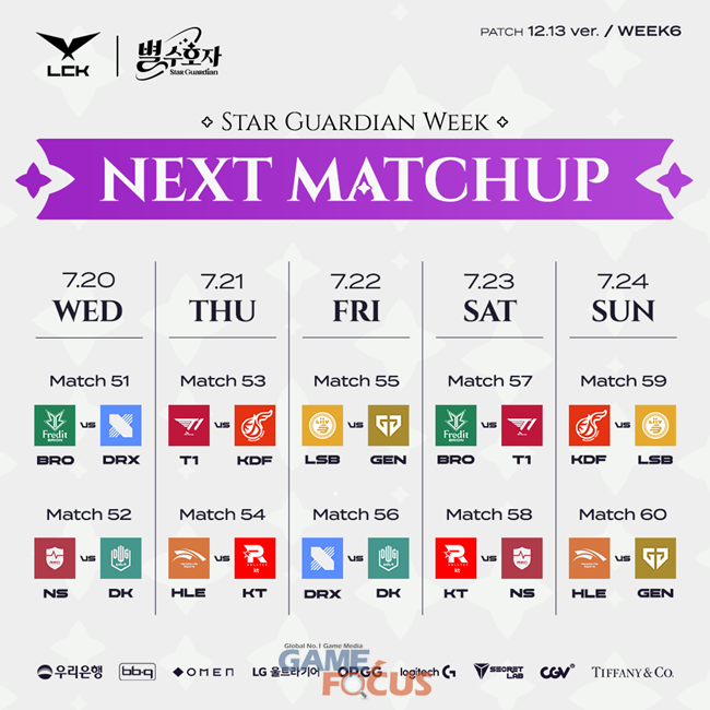 '리그 오브 레전드(LoL)' e스포츠의 한국 프로 리그를 주최하는 리그 오브 레전드 챔피언스 코리아(대표 오상헌, 이하 'LCK')가 20일부터 24일까지 서울 종로구 롤파크에 위치한 LCK 아레나에서 열리는 2022 LCK 서머 6주차에서 T1이 연승 행진을 가로 막았던 광동 프릭스와 대결을 펼친다고 밝혔다.