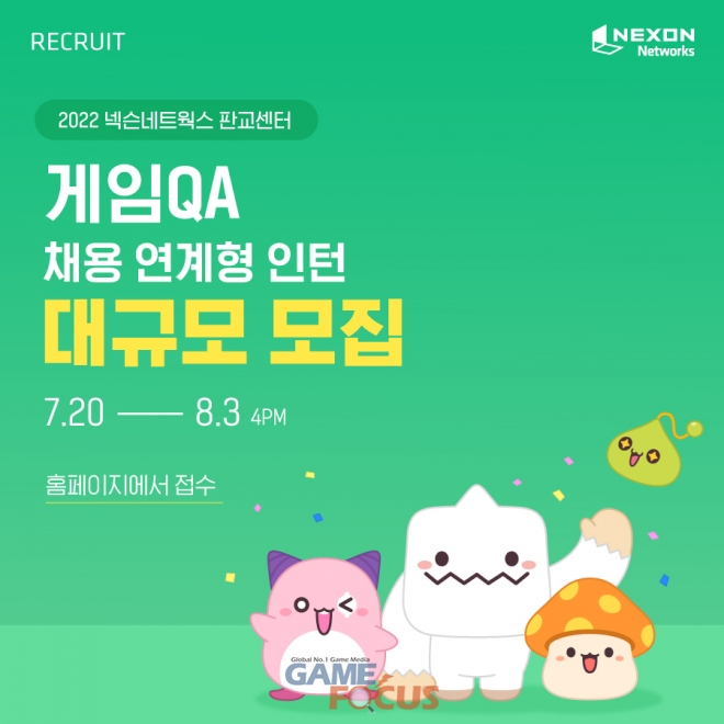 넥슨네트웍스 신충석 경영지원실장은 “지원자가 인턴십을 통해 효과적으로 게임 QA 직무를 경험하고 역량을 키울 수 있도록 다양한 프로그램을 마련했다”며 “게임 품질의 최종 책임자로서 전문성을 기르고자 하는 인재들의 많은 지원 바란다”고 전했다.