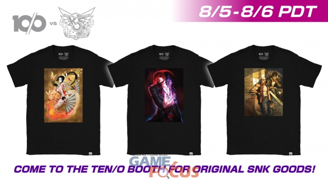 ten/o사 부스에서는 KOF XV 오리지널 티셔츠 및 일본에서 인기를 얻은 SNK 오리지널 굿즈를 판매한다. 더불어 '사무라이 쇼다운' Nintendo SwitchTM 컨트롤러 스킨과 NEOGEO 스티커도 증정된다. 단 수량 한정이다.