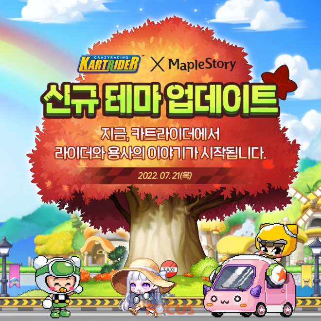 넥슨(대표 이정헌)이 온라인 캐주얼 레이싱게임 ‘카트라이더’와 인기 온라인 RPG ‘메이플스토리’와의 콜라보레이션 테마를 21일 업데이트했다.