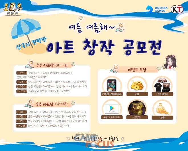 화가 부문에서는 1등 입상자에 아이패드 에어, 애플 펜슬, 2000 금화, '삼전 아티스트' 굿즈 패키지를, 2등 입상자에 상금 50만원, 2000 금화, '삼전 아티스트' 굿즈 패키지를, 3등 입상자에 상금 30만원, 2000금화, '삼전 아티스트' 굿즈 패키지를 지급하고, 우수상 5명에게도 소정의 선물을 제공한다.