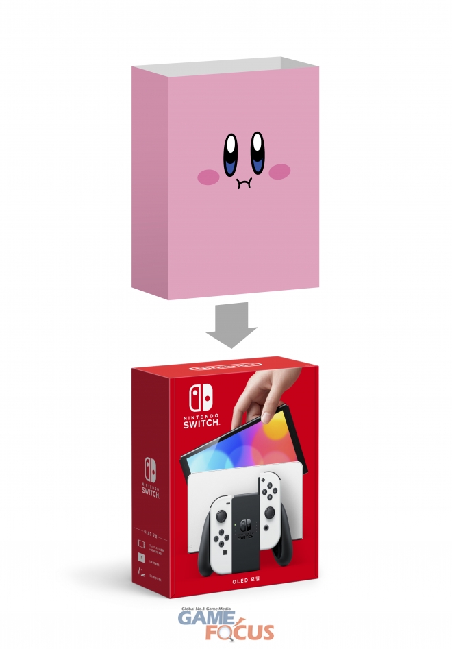 Nintendo Switch(OLED 모델)를 구입하면 본체 박스에 씌우는 커비 얼굴 디자인의 슬립을 받을 수 있다.