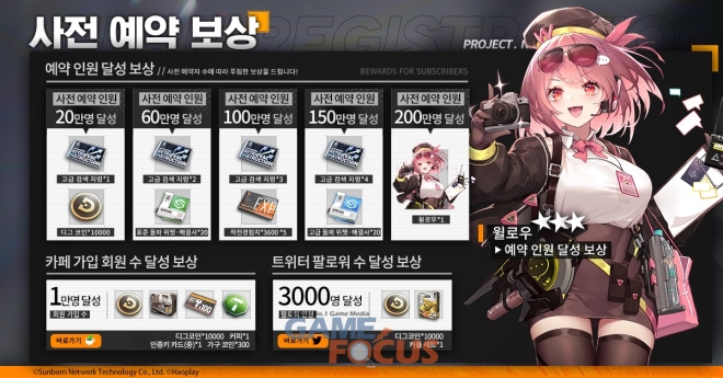 또한 사전 예약과 함께 공식 카페 및 트위터 팔로잉 이벤트를 진행하며 목표 회원 수에 도달하면 디그코인, 인증기 카드(중), 가구 코인, 커플 세트 등 다양한 보상을 획득할 수 있다.
