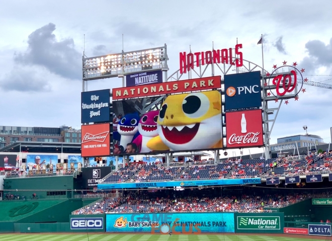 ‘아기상어의 날' 스페셜 경기는 한국 시간으로 1일(미국 현지 시간 7월 31일) 내셔널스의 홈구장 ‘내셔널스 파크’에서 열렸다. 내셔널스는 더핑크퐁컴퍼니와 특별한 인연으로 맺어진 구단이다. 지난 2019년 내셔널스는 ‘핑크퐁 아기상어’를 응원가로 사용하며 창단 50년 만에 최초로 월드시리즈에 진출한 뒤, 첫 우승까지 차지했다. 핑크퐁 아기상어는 내셔널스의 간판 응원곡으로 사용되면서 현재까지 사랑받고 있다.