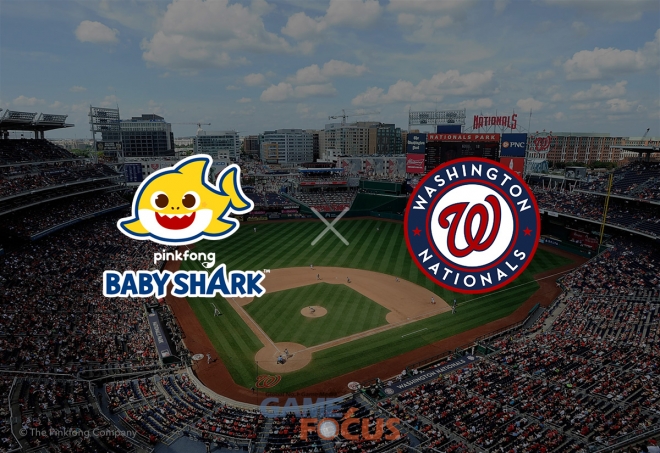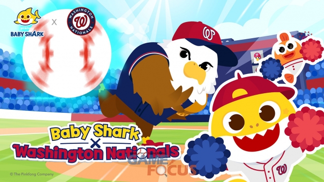 이날 내셔널스 파크를 찾은 관중 4만여 명은 더핑크퐁컴퍼니가 새롭게 제작한 응원가를 부르며 홈팀의 승리를 외쳤다. 해당 응원가는 전 세계 최초로 유튜브 누적 조회수 100억뷰를 기록한 ‘핑크퐁 아기상어’의 후렴구와 드럼 비트가 더해져, 내셔널스 선수단의 사기를 북돋우면서 관중석에 열기를 더했다. 내셔널스를 상징하는 독수리 마스코트 ‘스크리치’와 상어가족이 함께 등장하는 뮤직비디오(MV) 또한 경기장 대형 전광판을 통해 송출됐다.