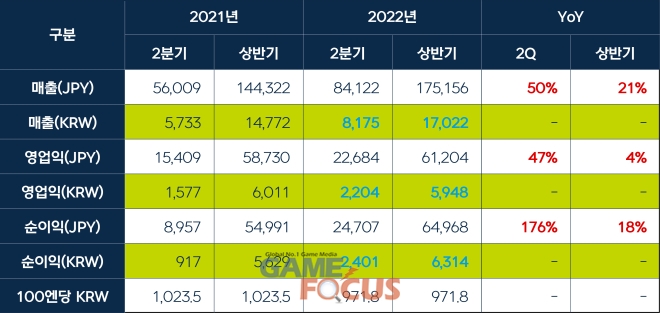 상반기 누적 매출은 전년 동기 대비 21% 증가한 1,752억엔 기록