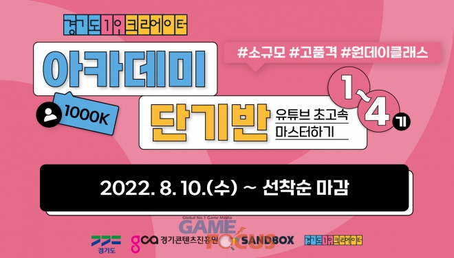 경기도와 경기콘텐츠진흥원이 주관하고 샌드박스네트워크(대표 이필성)가 운영하는 '2022년 경기도 1인 크리에이터 아카데미'가 10일부터 단기역량강화반 수강생 60명을 선착순 모집한다.