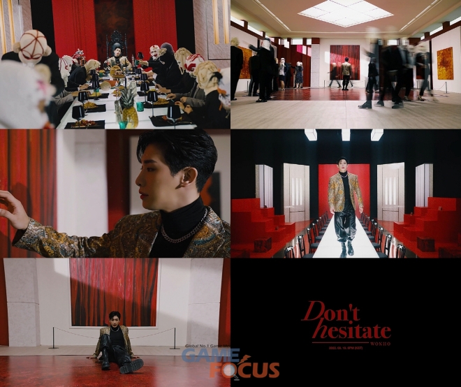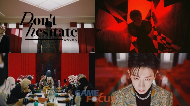 이내 음악 변주와 함께 파티룸으로 장면은 전환됐고, 가면을 쓴 인물들 사이에서 지루해하는 원호 모습이 조명됐다. 핀 조명 아래 식탁 위를 런웨이처럼 당당하게 걷거나, 혼란스러워하는 듯한 모습이 원호의 치명적이고 도발적인 매력을 선사했다. 또한 고혹적이고 강렬한 레드 앤 블랙 컬러 매치가 현실과 가상을 오가는 듯한 압도적인 몰입감을 연출했다.