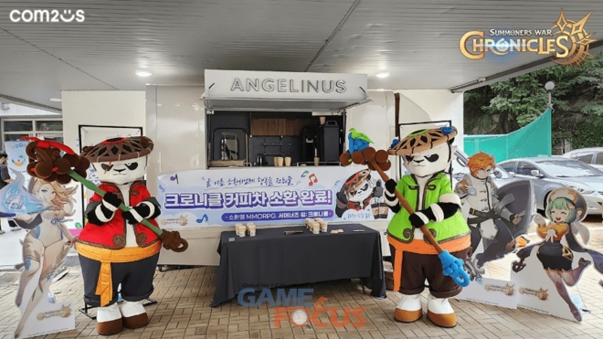 컴투스는 지난 7월말부터 '크로니클'의 유저들을 대상으로 사연을 모집하고 당첨자에게 커피차를 전달하는 이벤트를 진행했다. 이를 통해 컴투스는 여러 사연들을 접수 받았으며, 커피를 통해 따뜻한 마음을 전하고자 하는 신청자들의 사연을 선정, '크로니클'의 소환수 캐릭터인 웅묘무사와 함께 다양한 음료를 제공하는 '엔젤리너스' 커피차를 배달했다.
