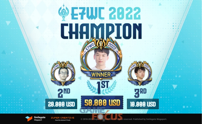 E7WC 2022의 최종 우승은 일본 서버의 '팬텀(PHANTOM)'선수가 차지했다. 팬텀은 본선 8강에서 패배하며 패자조로 내려가 한때 탈락위기에 몰리기도 했으나, 이후 안정성을 기반으로 한 전략적 영웅 선택으로 강자들을 물리치고 드라마 같은 최종 우승을 이뤄내 눈길을 끌었다.