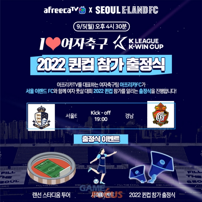 아프리카TV는 5일, BJ(Broadcasting Jockey, 1인 미디어 진행자)들로 구성된 ‘아프리카FC’가 K리그2 소속 서울 이랜드 FC와 협력해 ‘2022 K리그 K-WIN CUP(퀸컵)’에 참가한다고 밝혔다. 한국프로축구연맹이 주관하는 ‘퀸컵’은 여성 아마추어 축구 저변 확대를 위해 진행되는 대회다.