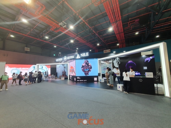 부스에서는 NFT 속 캐릭터가 되어볼 수 있는 포토존과 ‘나일’의 SNS 팔로우 등 이벤트도 진행 중이다. 참여하기 위해 많은 관람객이 몰리는 등 위메이드표 NFT에 대한 높은 관심을 보여주고 있다.