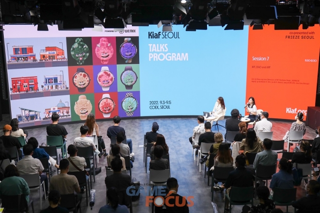 위메이드 이미경 NFT 사업부 이사는 오늘(5일) 토크 프로그램에 참여했다. '키아프 서울 2022'와 '프리즈(Frieze)'가 '팬데믹 이후, 변화하는 미술. 그리고 미래'를 주제로 공동기획했다. 이미경 이사는 'NFT, DAO, and ART' 세션에서 리우 법무법인 '캐슬린 김' 등과 함께 'New Future'에 대한 대담을 진행했다.